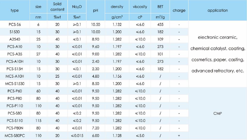 高純硅溶膠產(chǎn)品型號(hào)和規(guī)格: